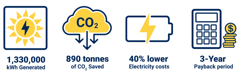 Now that we’ve looked at the numbers for 2025, it’s clear that it was a great move. In fact, the results are even better than we hoped. The panels produced 1,330,000 kWh of clean electricity, which is 8% above our original estimates. This shift has allowed us to avoid 890 tonnes of CO2 (Scope 1 & 2), making a real dent in our environmental footprint.
